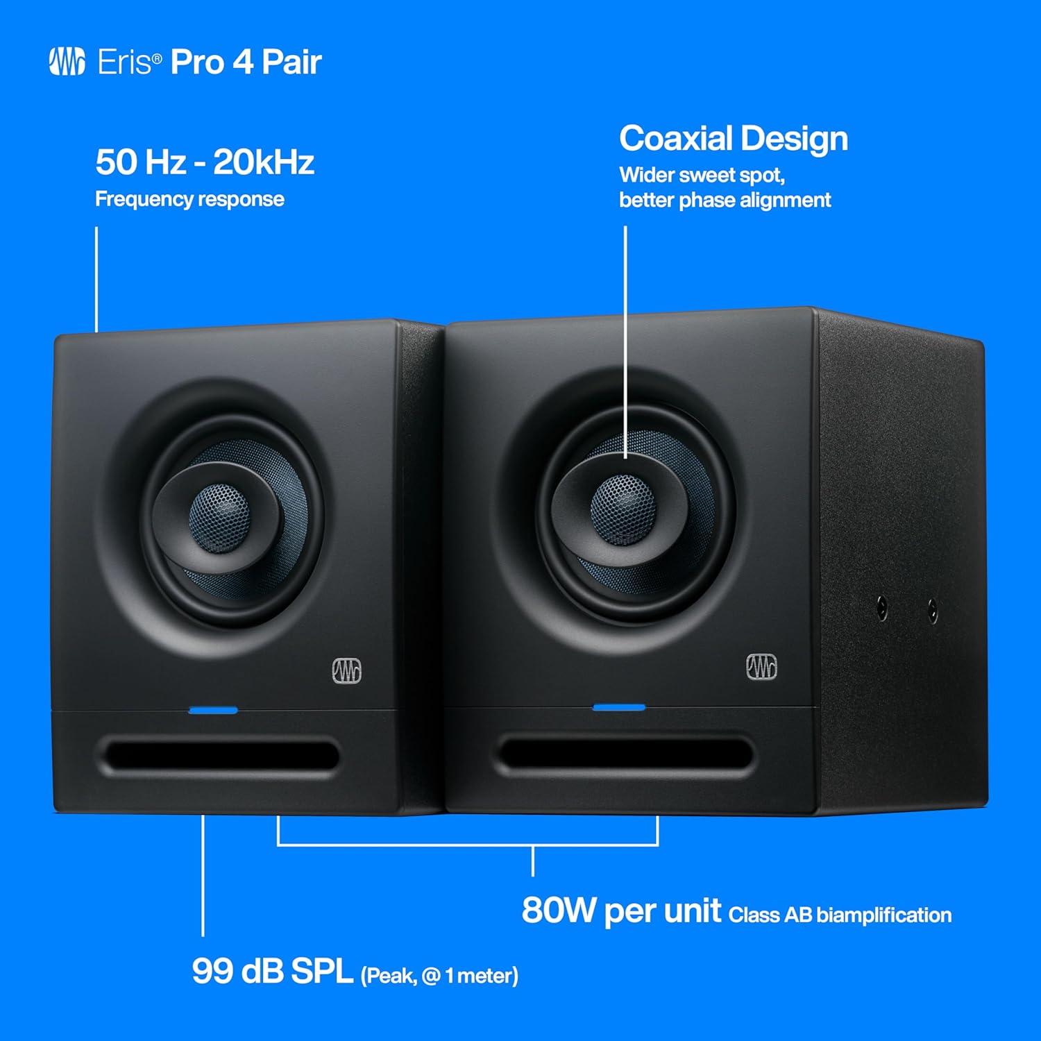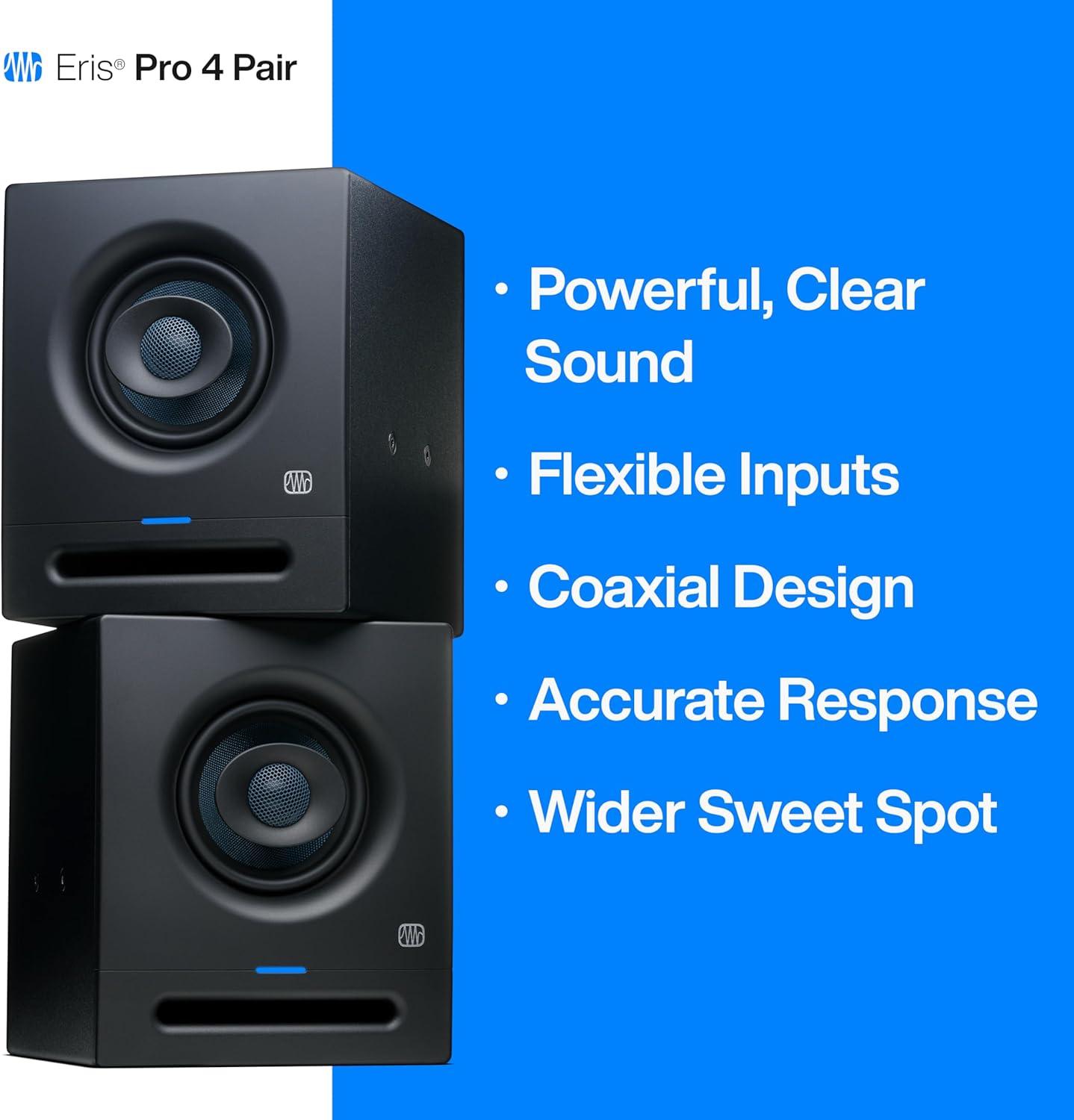 PreSonus Eris Pro 6 2-Way Biamped, Active, 6.5-inch Coaxial Studio Monitor(4 inch (Pack of 2))